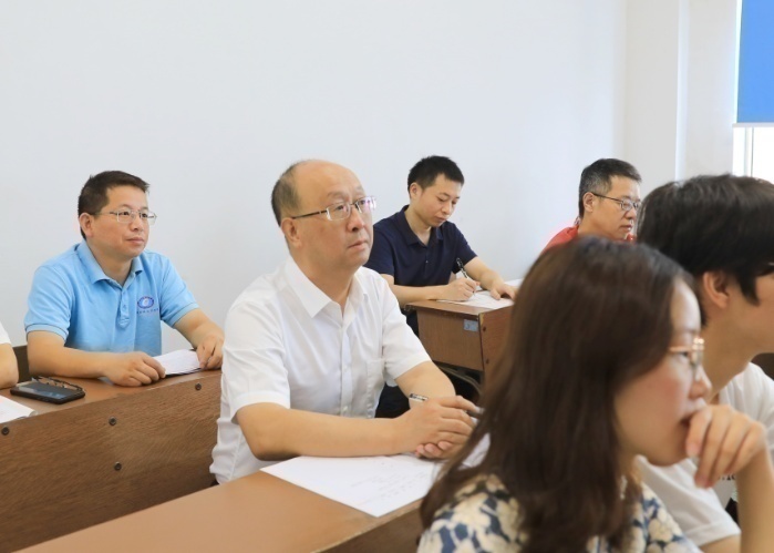 校党委委员、宣传统战部部长文炳勋(左二)随堂听课 何妍/摄
