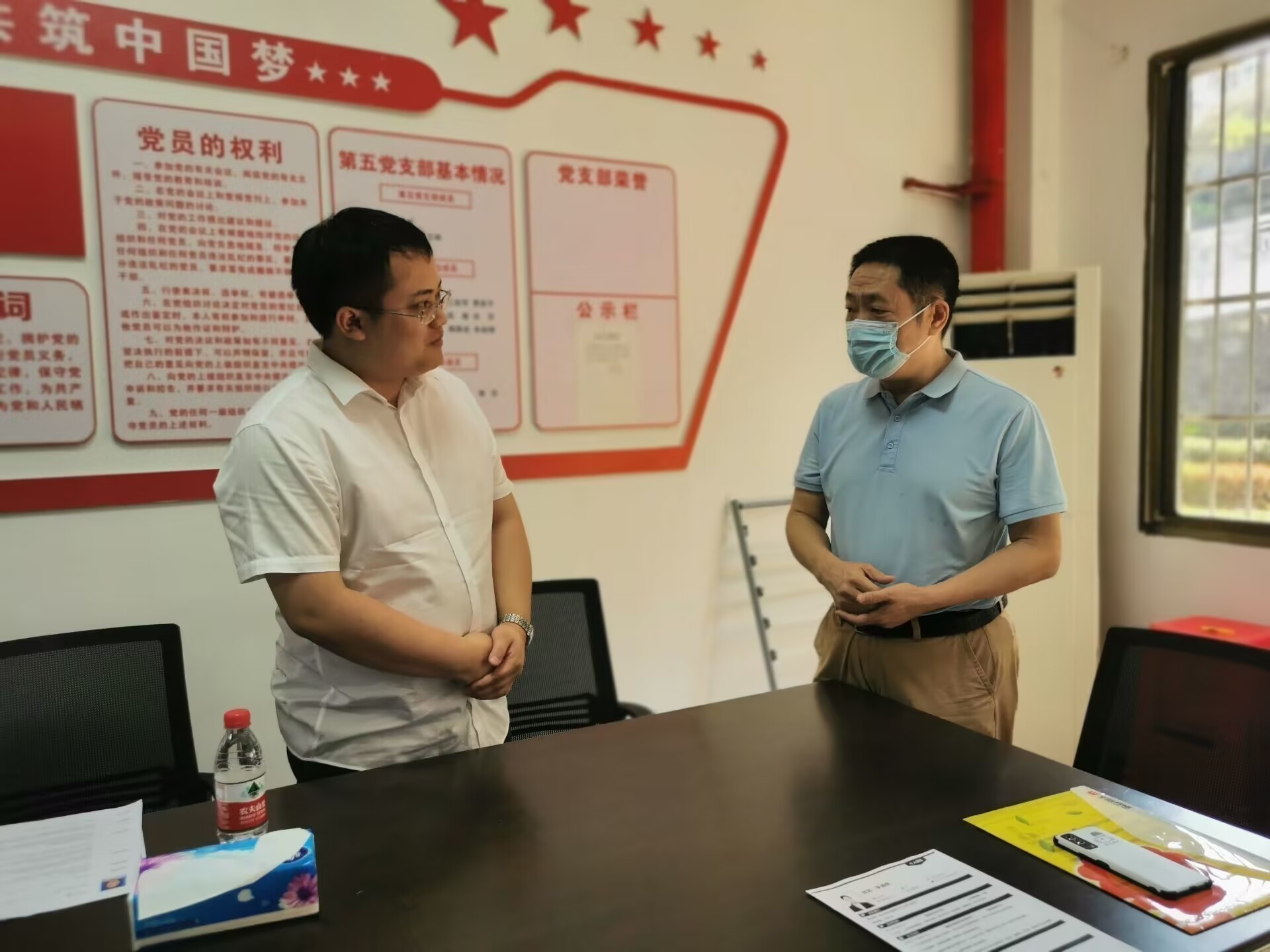 肖湘愚(右)与用人单位代表交流