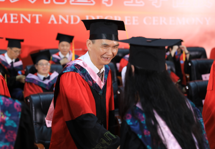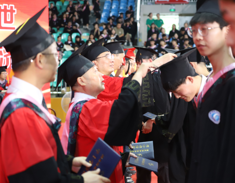 在随后举行的学位授予仪式上,全体校领导、相关学院院长和教授代表为参加典礼的毕业生一一拨正流苏,颁发学位证书,并合影留念。