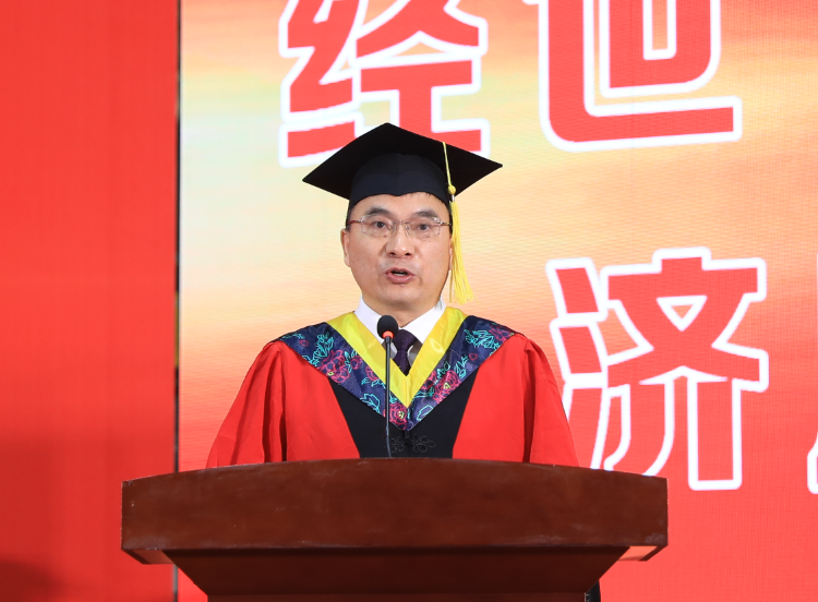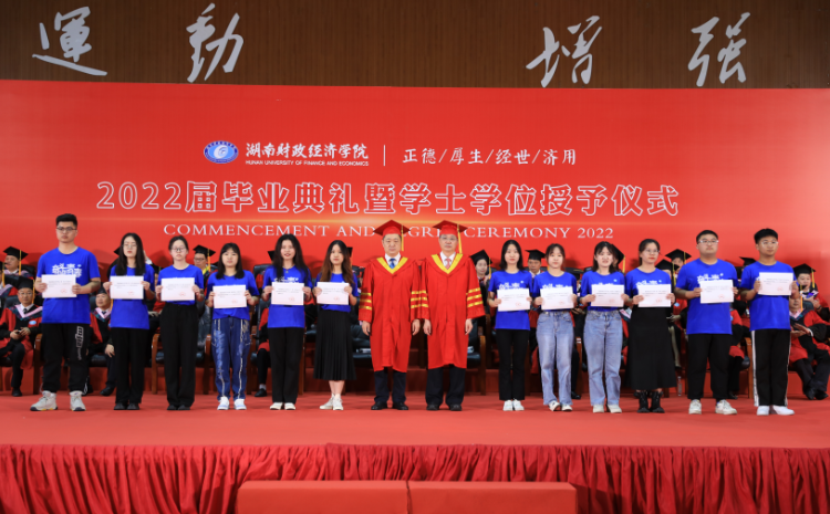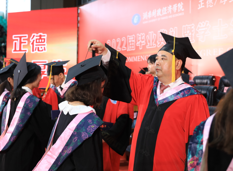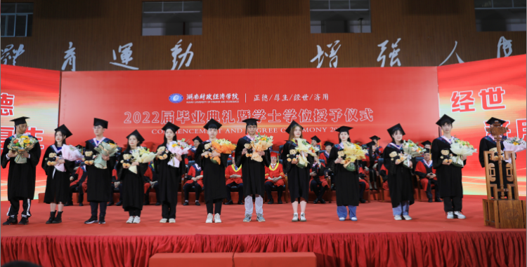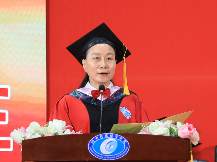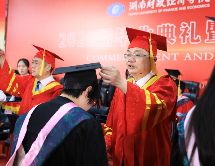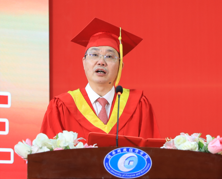 典礼上,刘长庚向学有所成的4817名毕业生表示最热烈的祝贺,向辛勤养育毕业生的父母、悉心教导毕业生的师长表示崇高的敬意和衷心的感谢。他在毕业致辞中深情回顾了毕业生在校期间的成长以及学校的发展变化:2018年,我和在座的同学们一同来到学校。四年间,你们亲历了纪念改革开放40周年的精彩瞬间,见证了新中国成立70周年的庆典盛况,目睹了全面建成小康社会梦想成真,迎接了中国共产党百年华诞。四年来,学校也和你们一道快速发展、砥砺奋进。纳入本科一批招生、获批建设硕士学位授予单位。深化“厚生实验班”“三学期制”等人才培养改革,立项6个国家一流本科专业建设点、11个省级一流本科专业建设点,建成湖南省最大经管类博士教师队伍。16-17栋学生公寓拔地而起,宿舍内空调、洗衣机、热水和直饮水配备到位,改造后的现代化多媒体教室焕然一新,雷锋校区顺利建成投入使用。明确申硕、改大学、申博“三步走”战略,在建设财经特色鲜明的一流应用型大学的道路上再次迈出坚实一步。
