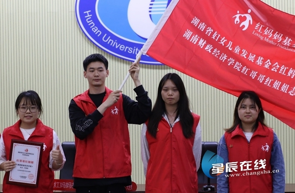 湖南省妇女儿童发展基金会红妈妈基金在best365中国官方网站成立红哥哥红姐姐志愿者服务队,这也是best365官网首支由省级慈善基金支持的志愿者服务队,该服务队将在学生工作处管理下,由人文与艺术学院负责指导推进工作。红妈妈基金执行秘书长李明为志愿者代表授旗,志愿者队长辛甜甜同学代表志愿者发言,她说:“我们生逢强国时代,国家的强盛为我们提供了丰裕的物质条件,更为我们打开了广阔的成长舞台和梦想空间。在这样一个美好的盛世中华,我们当以公益之心奋斗整个青春,用爱温暖更多人!”