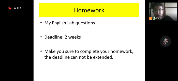 外籍教师Joey为厚生学院学生布置《英语口语》课后练习 潘晶晶/供图