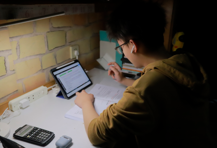 学生通过平板电脑在寝室学习线上课程 马海彬/摄