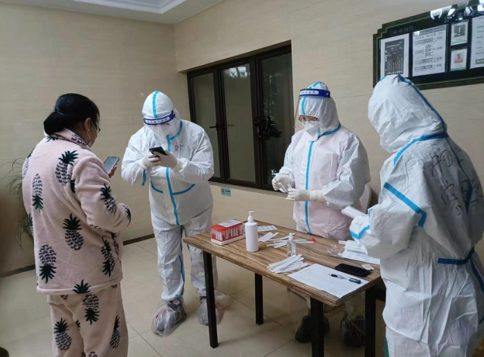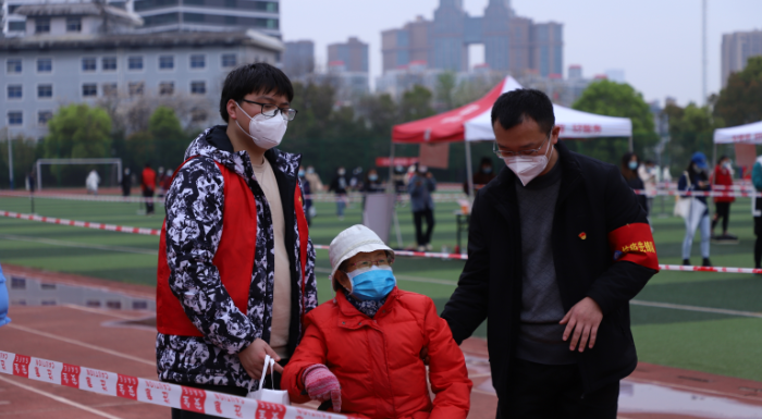 青年教师党员抗疫先锋队队员协助老年人完成采样 周雅/供图