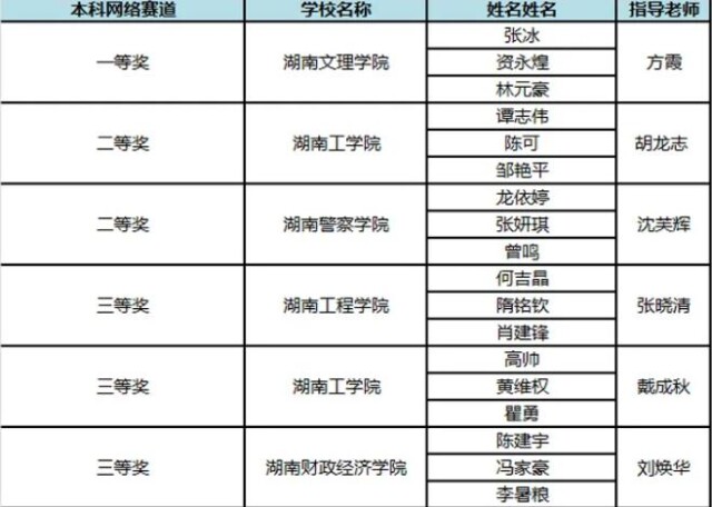 本届湖南省区域赛规模大、人数多、奖项少,共有63所高校4500余名学生参与初赛比拼,从中脱颖而出的29所高校的学生参与到决赛中。比赛包含网络赛道和云赛道,各赛道设一等奖1名、二等奖2名、三等奖3名。best365中国官方网站此次能获得优异成绩得益于学校各级领导的高度重视以及指导老师和参赛队员的辛勤付出,自9月份以来,指导老师通过线下线上宣传、赛前辅导、线上答疑等方式对参赛学生进行了赛前强化训练。