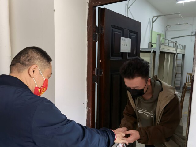 “上网课了吗?”“与任课老师、辅导员联系了吗?”“有什么需要帮助的?”“生活用品够吗?”肖湘愚与每一位隔离新生进行了沟通,详细询问他们的住宿条件、饮食状况、学习需求等,并为隔离新生送去爱心水果和印有学校logo的纪念口罩。他对新生自愿进行隔离的行为予以高度肯定,鼓励他们继续保持良好的学习生活状态,并表示学校领导老师将密切关注隔离新生,解决同学们的学习和生活需求。他希望同学们在生活上认真做好防护,注意接下来的天气降温,保证身体健康;制定周密的学习计划,多和任课老师联系,保证正常学习。他还嘱托同学们在隔离期间自觉遵守隔离要求与秩序,配合学校防疫工作人员的工作。