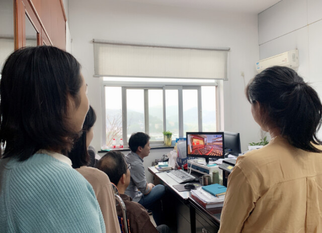 科研处教职工在会议室收看大会直播 周峰/供图