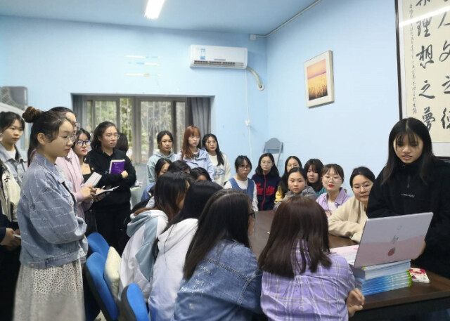 财政金融学院教职工在会议室收看大会直播 袁冶/供图