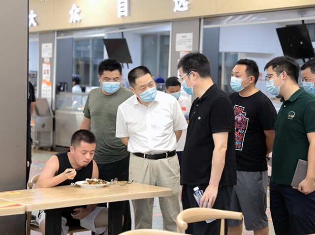 肖湘愚、刘长庚一行首先来到图书馆,检查了图书馆疫情防控措施的落实情况,慰问了暑期留校学习的学生。在学校南大门,肖湘愚、刘长庚了解了学校人员进出制度的执行情况,要求工作人员严把校门,对出入人员做好管控。在学生宿舍11栋,肖湘愚、刘长庚详细询问了留校学生在校的学习生活情况,并叮嘱他们要注重疫情防控,充分利用暑期留校时间努力学习。学生食堂里,肖湘愚、刘长庚仔细查看了菜品的种类、份量和价格,要求食堂提升菜品质量,提高师生就餐满意度。