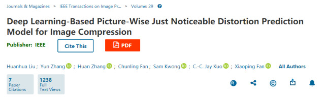 该研究成果对视频压缩中人眼对失真的感知特性进行研究,提出了基于深度学习的恰可察觉失真(Just Noticeable Distortion)预测模型。该模型能准确预测视频在压缩中的最大视觉冗余,反映出人类视觉系统对失真的感知能力及敏感度,可用于感知编码、流媒体服务,在不影响视觉体验的同时实现对视频最大压缩,大大减少所需存储以及传输带宽,为服务商以及用户节省大量成本。此项研究成果也将在财经领域的票据水印、票据智能识别、金融智能监控等应用中有用武之地。