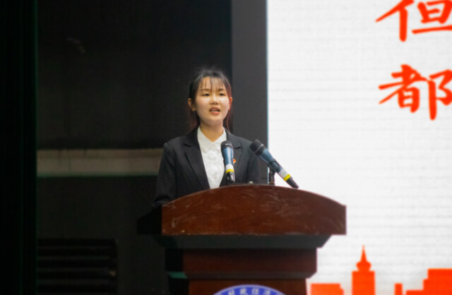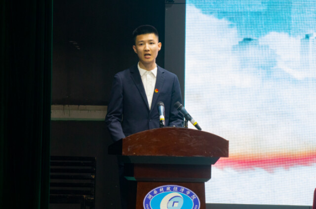 国家励志奖学金获得者代表、外国语学院2018级商务英语一班胡国伟,优秀考研学生代表、公共管理学院2017级行政管理一班张翔,“学习型寝室”获奖寝室长代表、经济学院2018级国际经济与贸易五班吴玉姣,优秀团干代表、会计学院2020级会计学(专升本)二班黄丹青分别作了交流发言,分享了自己的学习经验和成长感悟。