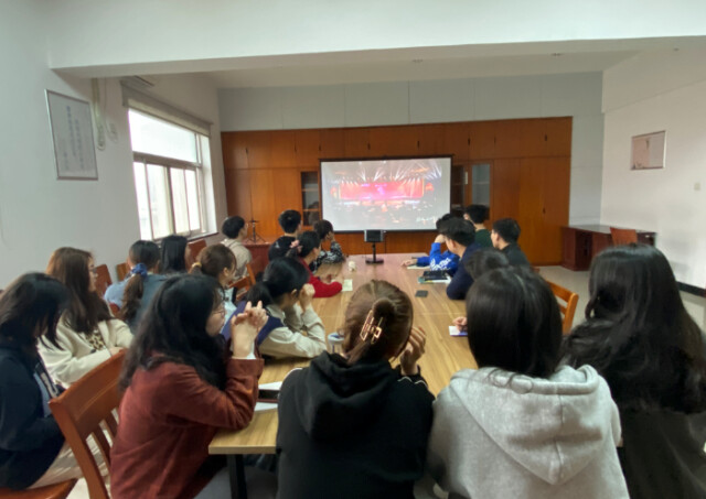 人文与艺术学院师生在办公室集中收看节目 吴艳芳/摄