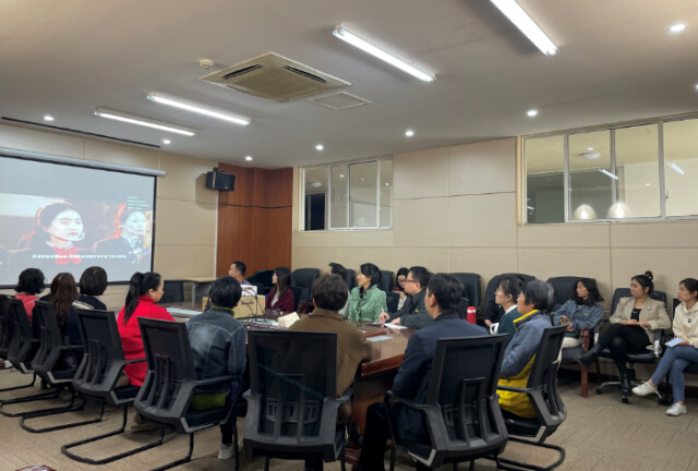 工程管理学院教职工在办公室集中收看节目 章艳宇/摄