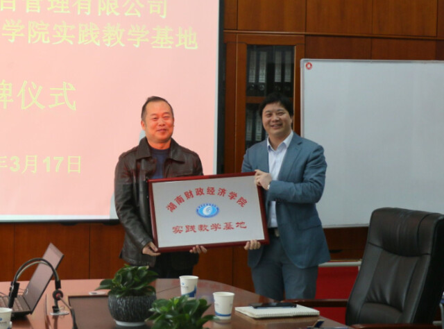刘茂盛分别向湖南亭台阁建筑信息技术有限公司、湖南新星项目管理有限公司、湖南新星房地产土地评估咨询有限公司授予“实践教学基地”牌匾。他希望通过校企合作和实践教学基地建设,更好地发挥企业优势,为学院和广大同学提供一个良好的学习和实践平台,为教师进行非住宅房地产评税系统的研发提供广阔空间,并期待校企双方继续深化合作领域与合作层次,为校企共赢发展打开广阔空间。