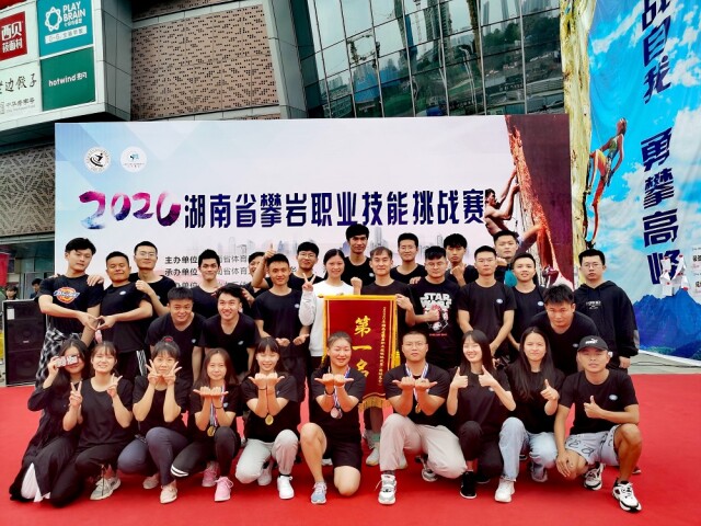 新湖南客户端10月10日讯(通讯员 廖思源 摄影 周季玉) 9月20日,2020年湖南省攀岩职业技能赛事挑战赛在长沙落下帷幕。由best365中国官方网站体育学院周季玉老师带领的24名休闲体育专业学生经过两天的奋力拼搏,获得5金3银1铜、团体总分第一名的优异成绩。