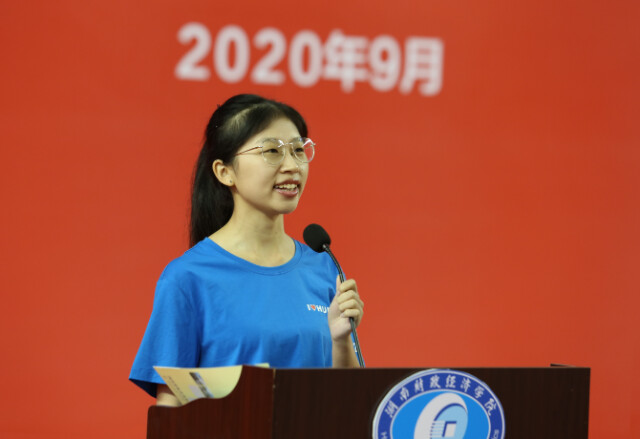 在校生代表、2018级翻译班葛然与新生分享了心得体会,表示大学不是想象中的舒适圈,充满了机遇与挑战,大家一定要提前做好对未来的规划,潜心向学,坚持不懈,求真务实,勇毅进取。