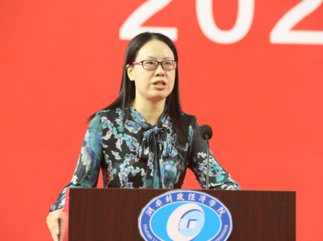 柒江艺作为教师代表欢迎2020级新生并发言。作为大学“过来人”,她嘱托新生要学好“永持爱心”这门基础课,爱自己、爱他人、爱当下;要学好“不忘初心”这门必修课,找准专业学习与职业定位方向、学会“断舍离”;要学好“心怀雄心”这门选修课,要有超越他人、跨越自己的雄心。