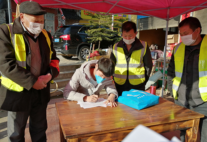 金远亮在村口执勤,登记检测