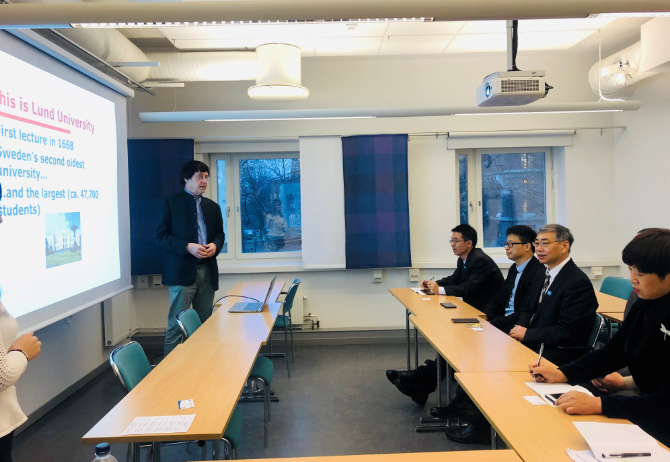 6日,湖南财院代表团来到瑞典隆德大学,并参观了具有300年历史的隆德大学图书馆。隆德大学建校于1666年,是世界百强大学、北欧最大的高等教育和科研机构。有8个院系以及各研究中心和专业学术机构,涉及自然科学、法律、社会科学、经济管理、医学、工程技术、人文科学、神学和艺术等领域。在该校对外联络负责人的主持下,隆德大学历史学教授英格马·奥特森为代表团详细介绍了学校的办学历程、专业设置、科研成就,着重介绍了隆德大学国际化战略,并建议双方通过Linnaeus-Palme交换生计划等国际合作项目加强学生联合培养,为今后两校更深入的学术交流合作打下基础。