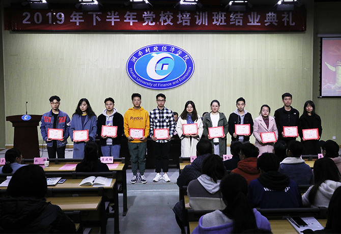 汪洋)12月4日晚,湖南财院2019下半年党校培训班结业典礼在二教学楼阶梯三教室举行。湖南财院党委书记肖湘愚,党委副书记、党校校长晏金平,党委委员、组织部部长、党校常务副校长王颖梅,机关党总支书记、党校副校长姚旭辉,各二级党组织负责人以及本期培训班顺利结业的党员发展对象和入党积极分子代表参加了结业典礼。结业典礼由姚旭辉主持。