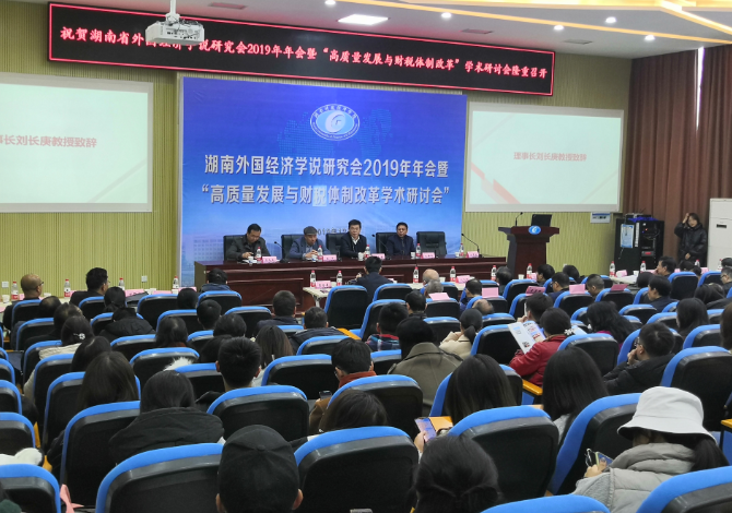 文茜红)12月7日上午,由湖南外国经济学说研究会主办、湖南财院财政金融学院承办的湖南外国经济学说研究会2019年年会暨“高质量发展与财税体制改革”学术研讨会在湖南财院二教学楼学术报告厅召开。来自社会各界、省内高校的知名专家学者齐聚一堂,共同研讨高质量发展与财税体制改革等重要问题。