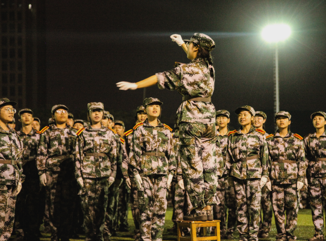 湖南日报·新湖南客户端10月17日讯(通讯员 文茜红 唐汇慧 严冬庆 摄影 唐汇慧 文茜红)10月2日晚,皓月皎洁,星光闪耀,校田径场秋风习习,歌声嘹亮,现场掌声一浪高过一浪。湖南财院2019级新生军训歌咏比赛在此火热举行,千余名学子用激情澎湃的歌声向伟大祖国深情告白,以斗志昂扬的精神风貌共同祝福新中国成立70周年。