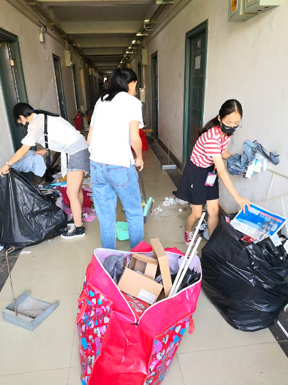 在学生们顺利完成搬寝后,各二级学院组织学生干部、学生党员、入党积极分子对学生宿舍公共区、新生宿舍的卫生进行打扫清理。同学们有的弯腰,有的蹲在地上,用拖把、铁铲、甚至双手认真清理桌面、地面、角落的垃圾、杂物,用实际行动诠释了“不怕苦、不怕累”的工作作风,受到了大家的一致好评。经过大家的全面清扫,宿舍楼内整洁一新。