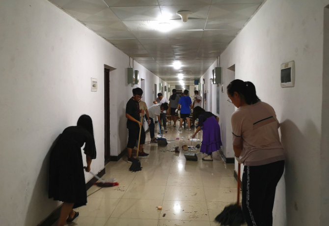 学生干部、学生党员、入党积极分子清扫学生宿舍公共区卫生 马艳/摄