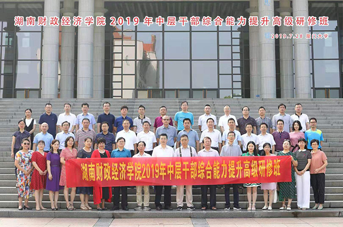 湖南日报·新湖南客户端8月15日讯(通讯员 唐雄伟)盛夏季节,暑气升腾。7月28日-8月1日,湖南财院中层干部综合能力提升高级研修班在素有“南方之强”美誉的“双一流”建设高校厦门大学举行,近50名中层干部在此凝心研修,进行集中充电。湖南财院校长刘长庚、副校长刘建民参加了研修班开班仪式,并和大家一起听课、学习。厦门大学原党委副书记潘世墨、教师发展中心主任朱水涌参加了开班仪式。