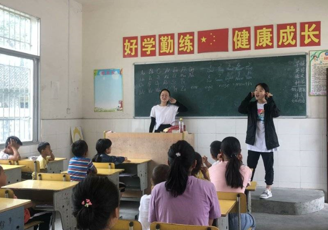 厚生国际教育学院拾光志愿服务队成员教授孩子们英语 胡佩瑶/摄
