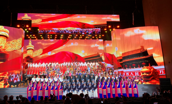湖南财院大学生合唱团与全国各地合唱团共同演唱《追梦的人们》 张亚男/摄