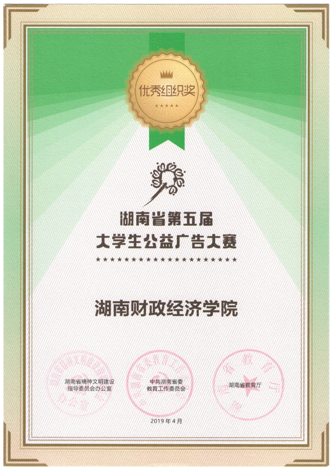 为培育和践行社会主义核心价值观,进一步激发当代大学生投身中国特色社会主义公益事业的热情,推进高校校园文化建设,省文明办、省委教育工委、省教育厅联合开展湖南省第五届大学生公益广告大赛。大赛时间为2018年7月-2018年12月,以“不忘初心”为主题,面向全省普通高校在校学生征集平面广告、视频广告等各类优秀公益广告作品。大赛由湖南大众传媒职业技术学院承办,湖南省教育厅信息中心、湖南教育电视台协办。