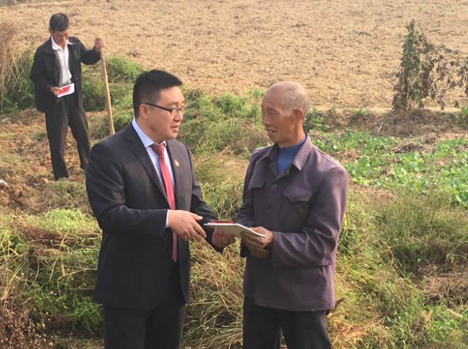 石罡把新修改的《党章》和党的十九大报告单行本送到贫困人口手中