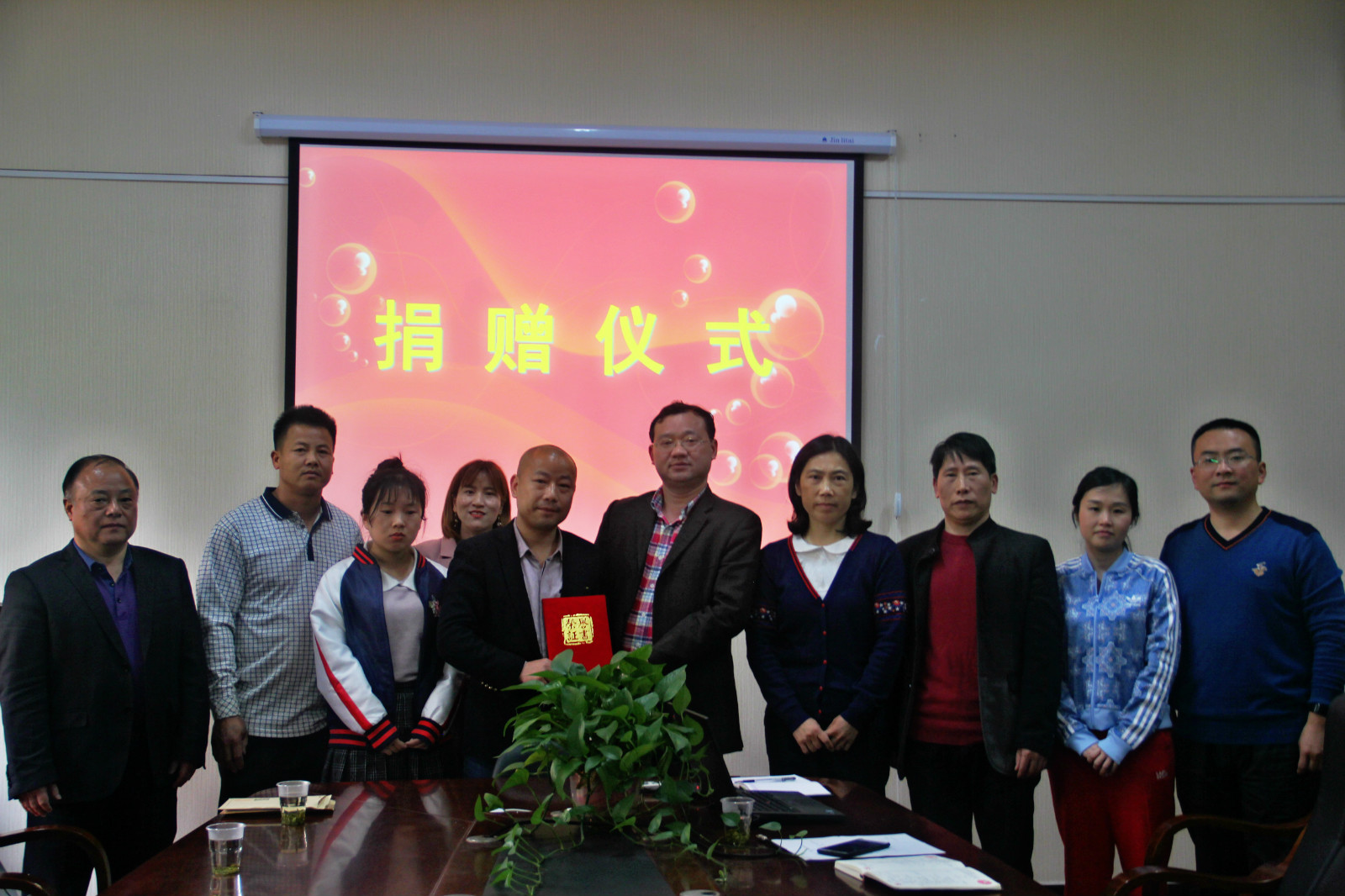 捐赠仪式上,刘耀国亲自将爱心助学款交到蒋亮芳同学的手中,鼓励她好好学习,坚强面对困难,并承诺会常年资助她及其弟蒋欣源完成学业。促成此次善举的引荐人——基建处副处长汤孟军表示,希望蒋亮芳努力学习,不要辜负爱心人士的厚望,做一个对社会、对国家、对家庭有用的人才,将这一份爱心善心接力下去。湖南财院会计学院党总支书记李建梅、院长刘纳新、党总支副书记戴恩湘对刘耀国的善举善行表示诚挚感谢和由衷的敬意,希望蒋亮芳能勇敢地面对灾难,担起自身的责任,刻苦学习,做一个坚强、有担当的大学生。蒋亮芳对刘耀国的捐赠、对帮助过她的老师和同学表示真诚的感谢,并表示一定会努力学习,认真做事,做一个懂感恩的人。