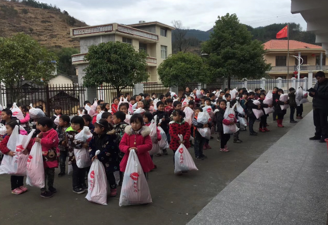 伍家湾村小的孩子们领取捐赠物资