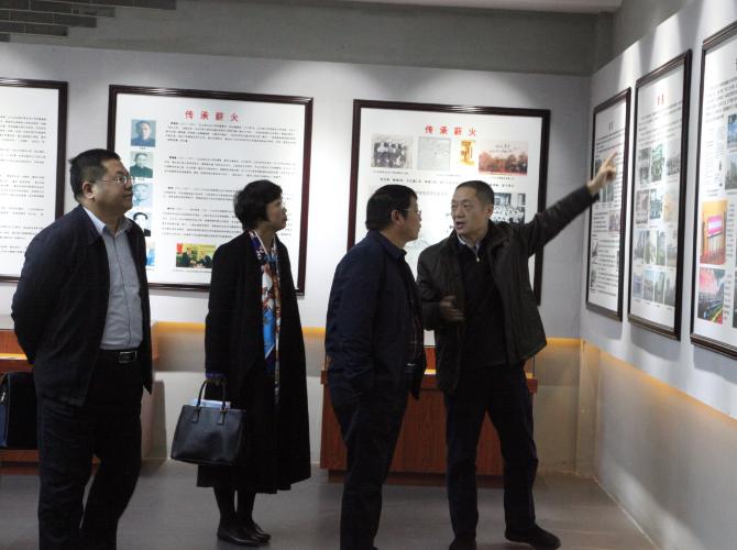 专家组察看学校校史展览馆 唐雄伟/摄