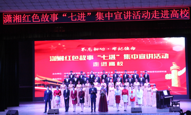 新湖南客户端12月21日讯(通讯员 瞿源 吕铭浩 刘洪源)12月18日晚,由省委宣传部等7家单位联合主办的“不忘初心·牢记使命”潇湘红色故事“走进高校”首场宣讲活动在湖南财院大礼堂举行。湖南财院党委书记肖湘愚,副校长王焕清,党委委员、组织部部长王颖梅,党委委员、宣传统战部部长陈灿军以及省委宣传部宣教处副处长谢青、省委办公厅接待办副处长米颖等出席。