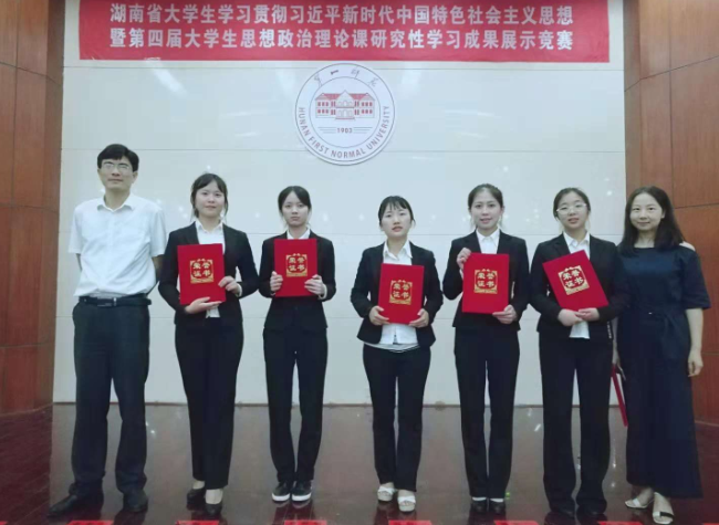新湖南客户端11月19日讯(通讯员 刘振强 何赛雄)近日,湖南省教育厅下发了《关于公布湖南省大学生学习贯彻习近平新时代中国特色社会主义思想暨第四届大学生思想政治理论课研究性学习成果展示竞赛结果的通知》,湖南财院由何赛雄老师指导,2016级财政一班袁敏、陈雅玲、田蜜、旷锋、曾慧组成的研究性学习小组的成果《站在巨人的肩膀上看世界——关于新时代中国特色社会主义思想的理论渊源研究》荣获此次竞赛本科组二等奖,何赛雄老师荣获“优秀指导老师”荣誉。