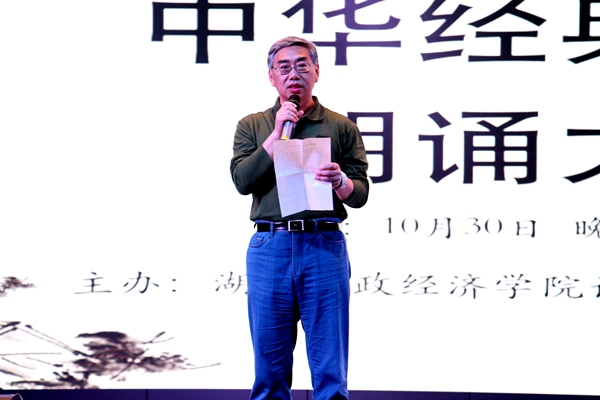 樊晓平在致辞中指出,经典诗文诵读能激发同学们的民族自豪感,提高道德情操和审美能力。举办诵读大赛一方面推广了普通话,推进全校语言文字工作,另一方面有益于营造人文氛围,促进通识教育,创建文明校园,全面提升学生综合素质,是落实教育部提高本科教育教学质量,大力提升人才培养水平的重要方式。