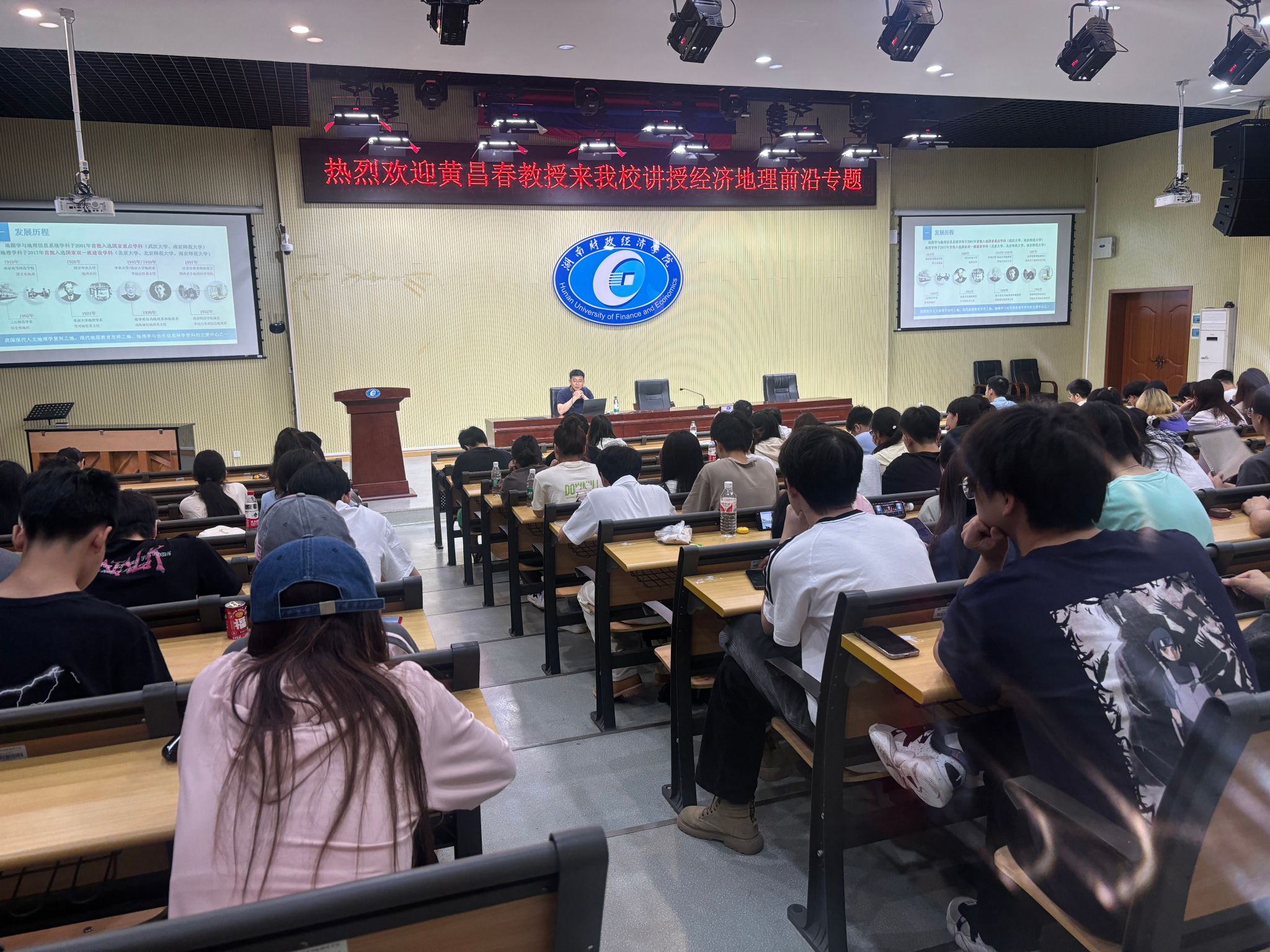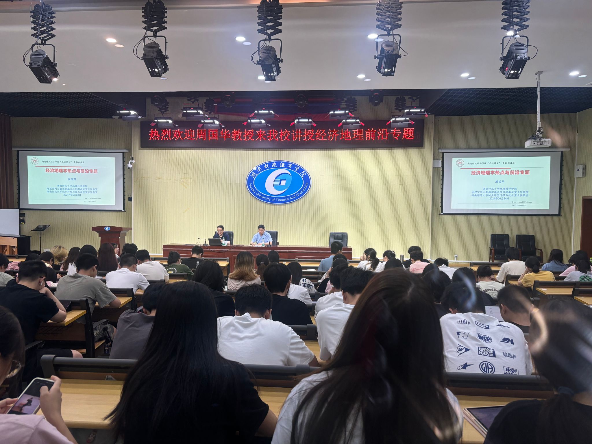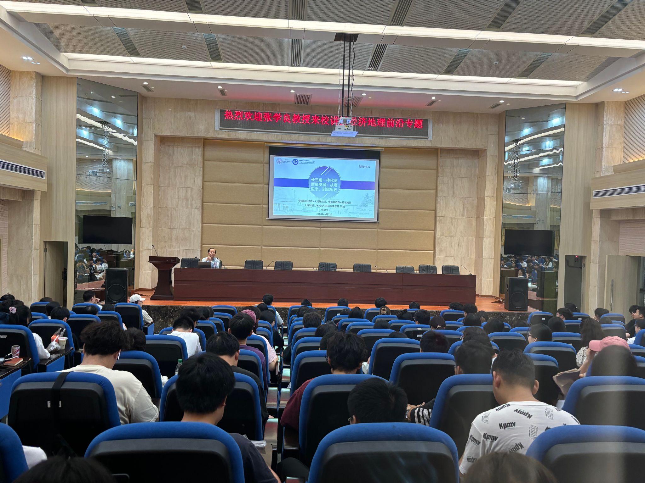 (本网讯)近日,经济地理学院举办2024年暑期课程名家讲学活动,邀请全国政协常委樊杰教授、上海财经大学城市与区域科学学院院长张学良教授、湖南师范大学地理科学学院院长周国华教授以及南京师范大学地理科学学院院长黄昌春教授讲授《经济地理前沿专题》课程。活动分别由经济地理学院院长彭文斌、副院长苏昌贵主持,经济地理学院200余名师生积极参与。