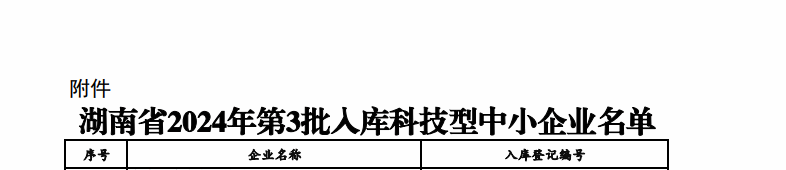 (本网讯)10月30日,湖南省科技厅发布了《关于公布湖南省2024年第三批入库科技型中小企业名单的通知》,公司正式被认定为“科技型中小企业”。继被认定为“高新技术企业”之后,公司再次收获一项省级荣誉。