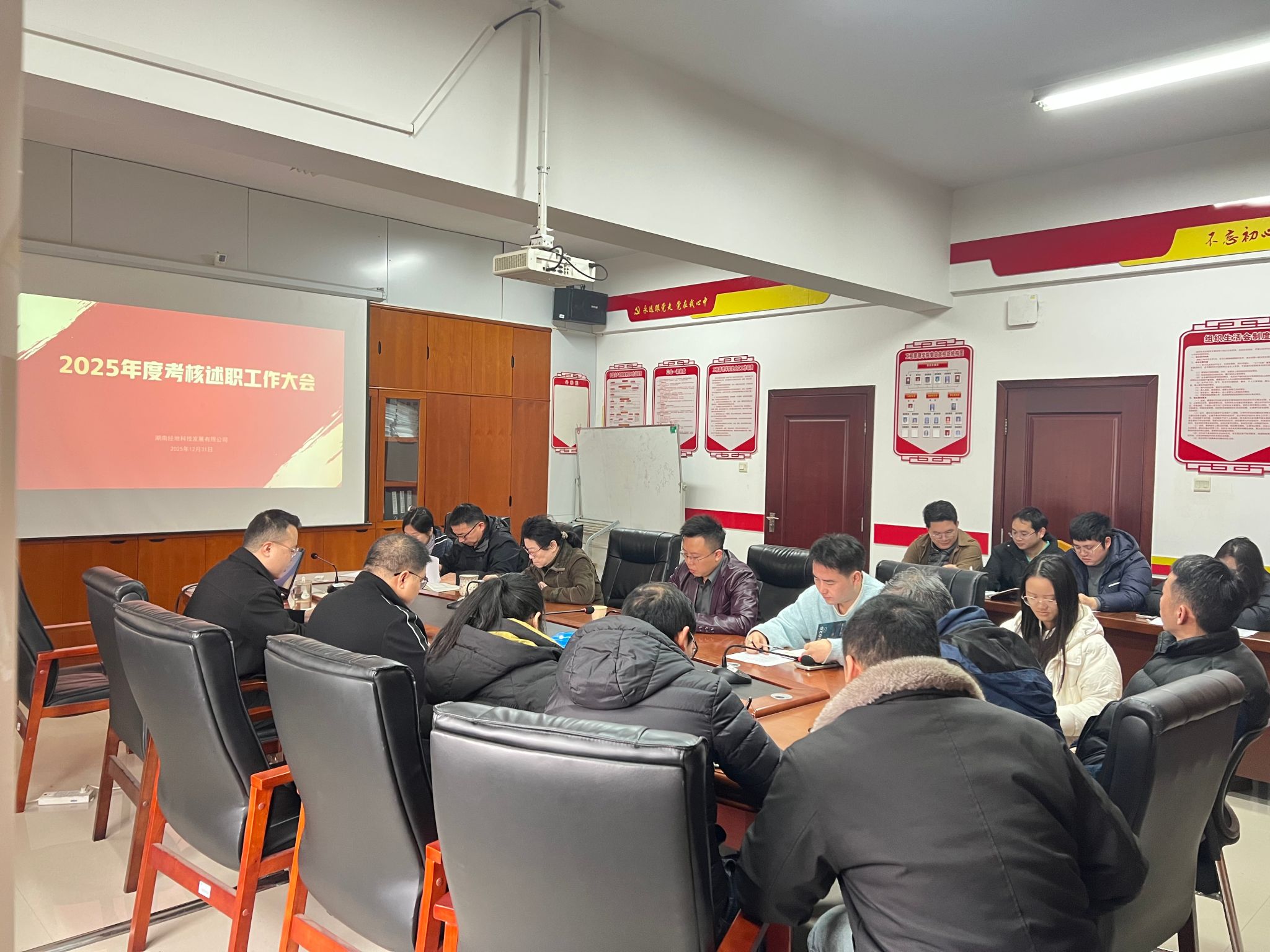 (本网讯)12月31日上午,公司召开2025年度考核述职工作会议。会议由公司董事长魏晓主持,常务副总经理雷绪斌、公司各部门负责人和全体职工参加会议。