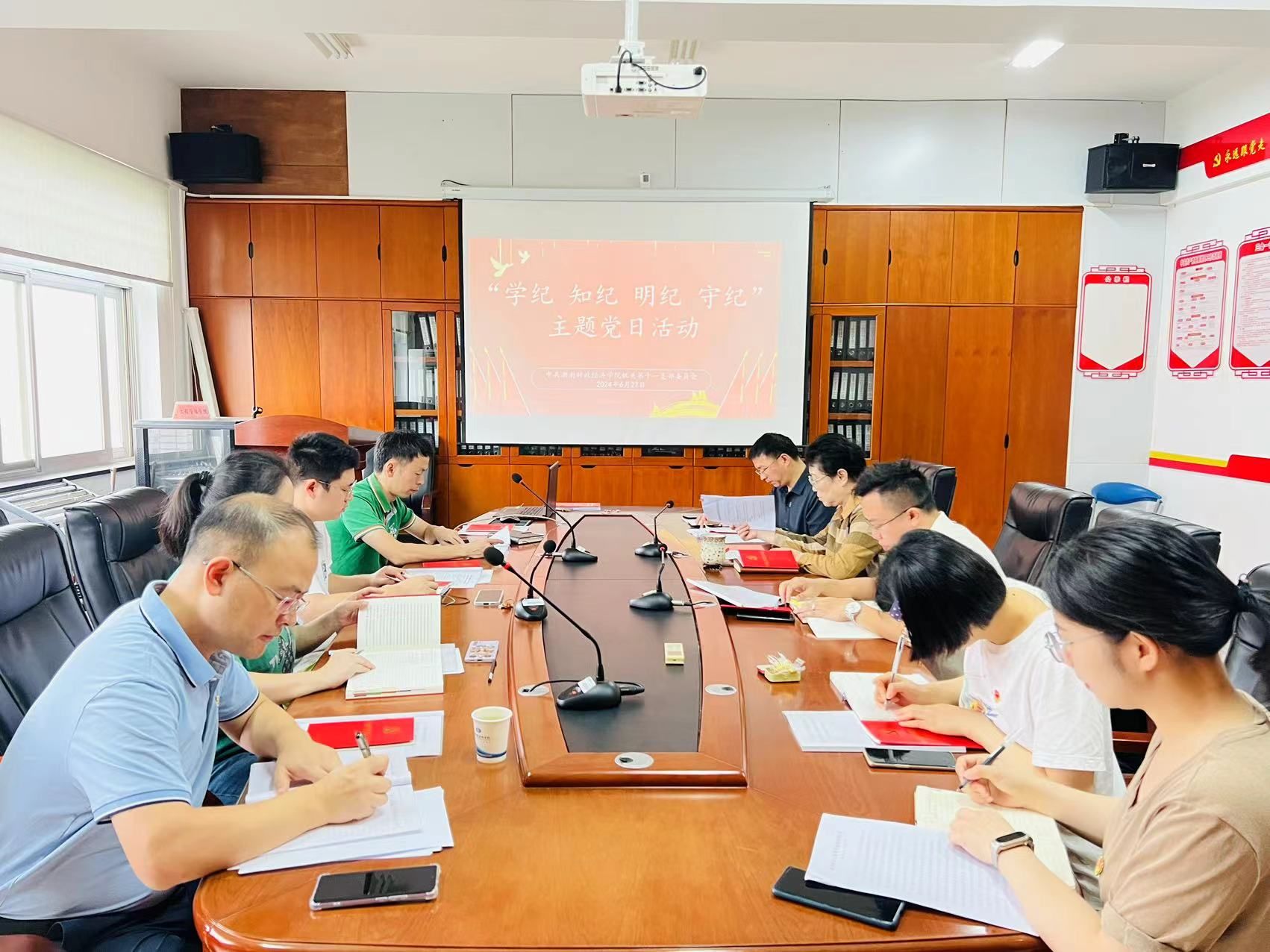 (本网讯)6月27日上午,机关第十一党支部在主校区行政楼911会议室开展“学纪 知纪 明纪 守纪”主题党日活动,结合党纪学习教育,引导公司党员筑牢清廉防线。会议由党支部书记、公司董事长魏晓主持,校机关党委委员、教学质量监控与评估中心副主任王依列席指导。