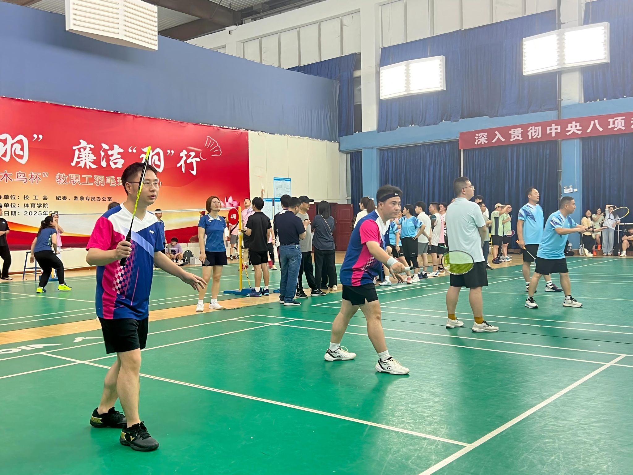 (本网讯)5月7日晚,2025年best365中国官方网站“啄木鸟杯”教职工羽毛球团体赛正式开启。本次活动由校工会和纪委、监察专员办公室主办、体育学院承办,旨在加强教职工之间的合作、交流与互动,共享快乐,健心强体,营造风清气正、健康向上的工作氛围。公司积极组织与筹备,共同为团队的荣誉而拼搏。