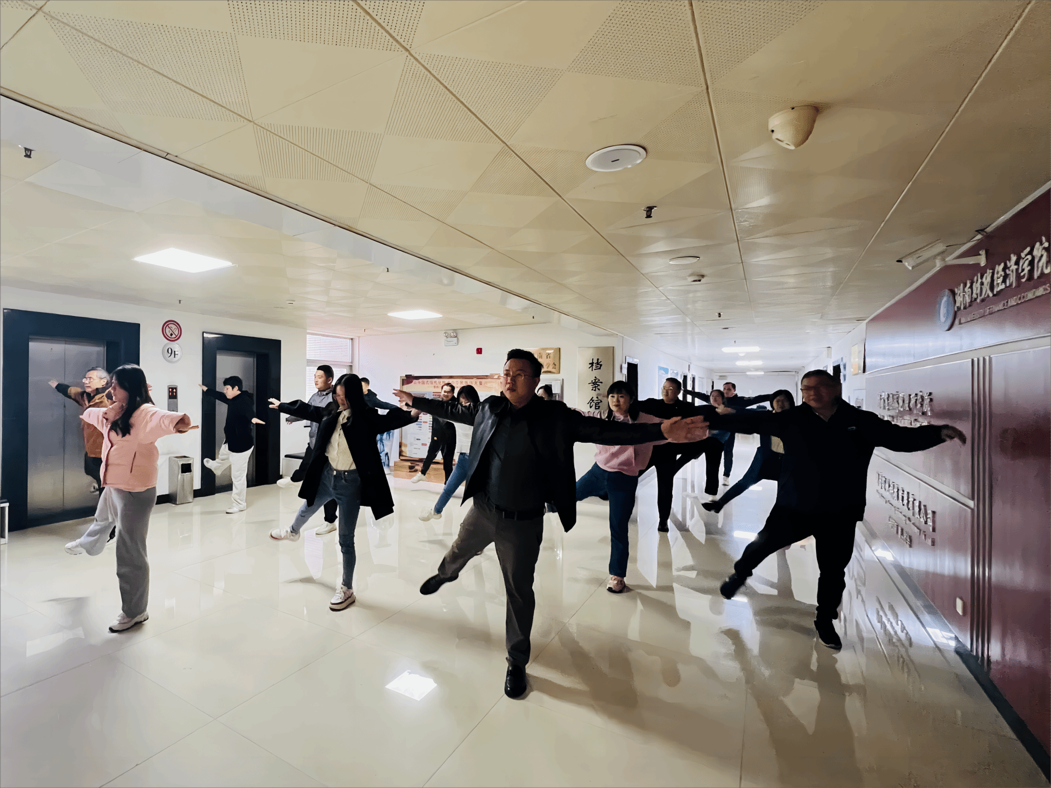 本网讯为进一步倡导健康文明新风尚,激发积极向上的工作状态,公司积极响应校工会“关于开展工间操活动的倡议”号召,组织开展每日工间操活动,为全体职工的精神生活注入了一抹律动色彩。
