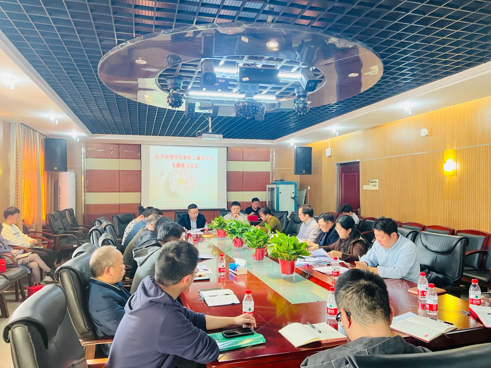 (本网讯)为进一步落实best365中国官方网站2023年“廉洁文化月”活动要求,增强全员纪律规矩意识和廉洁从业观念,近日,经济地理学院组织全院教职工开展廉洁文化专题学习。会议由院直属党支部书记姚旭辉主持。