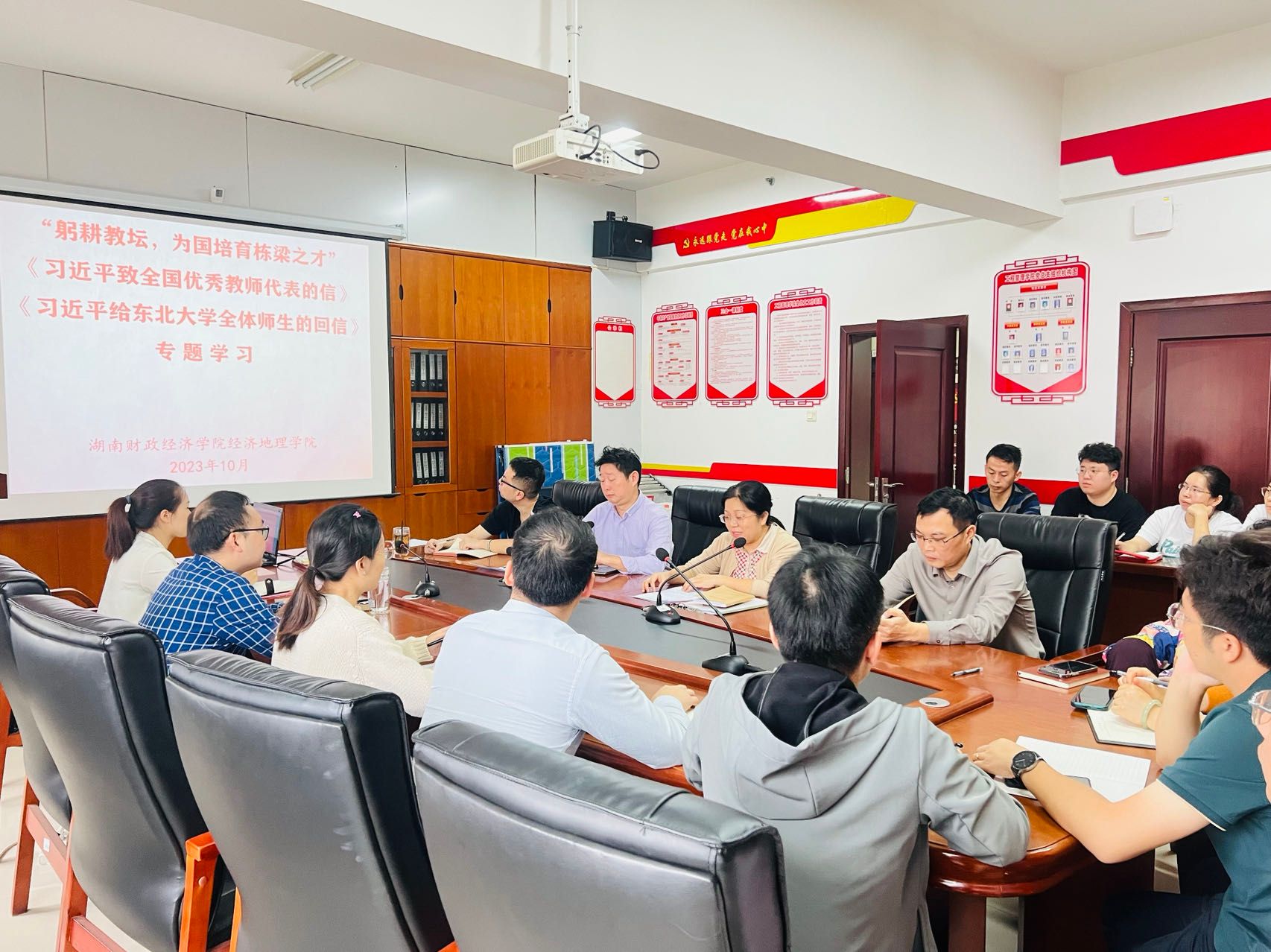 (本网讯)10月19日上午,经济地理学院组织全体教职工在主校区行政楼911会议室开展教育家精神“大学习、大宣传、大讨论”活动,传达学习习近平总书记近期重要指示精神以及学校相关文件精神。院直属党支部书记姚旭辉主持会议。