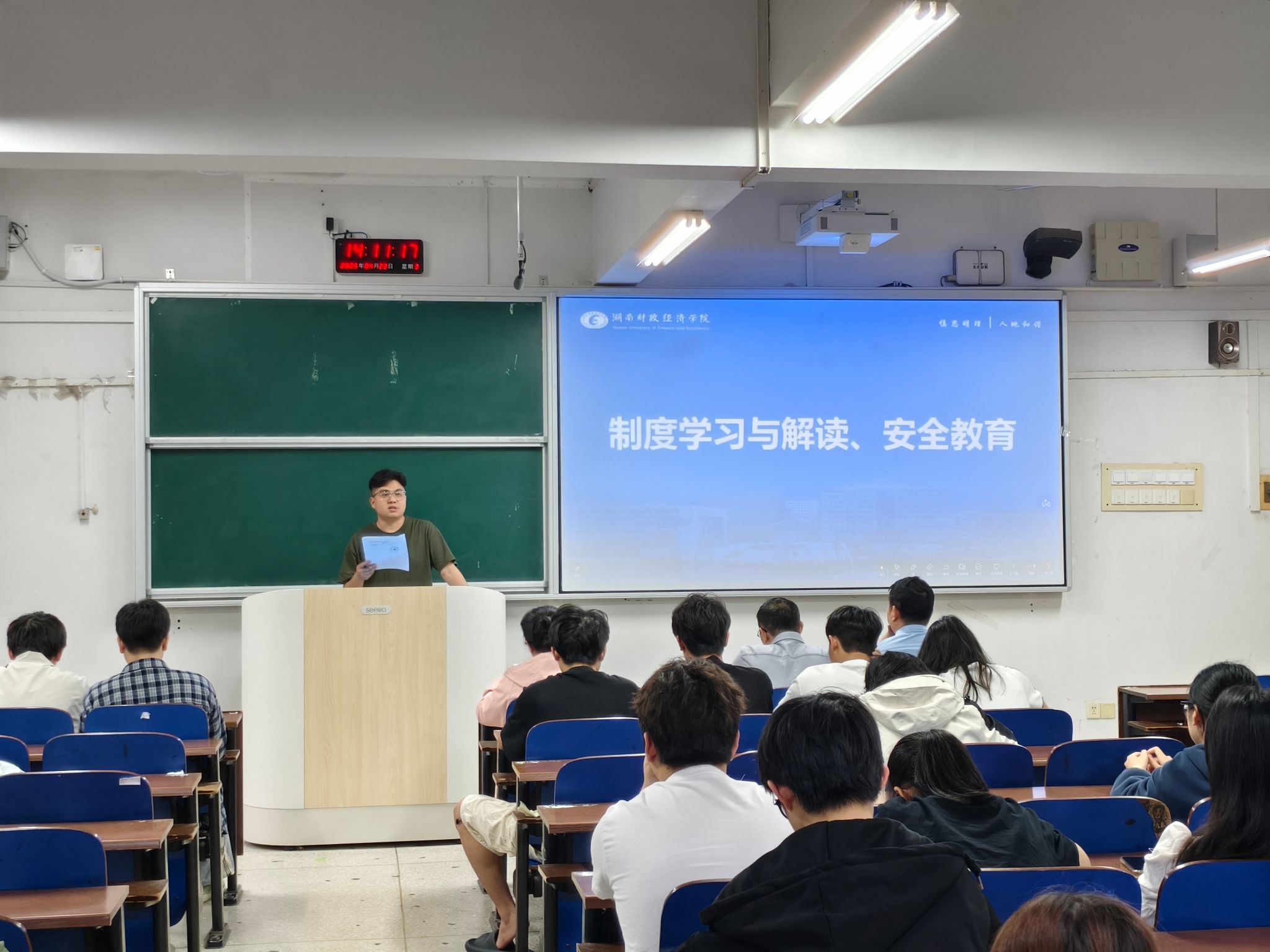 (本网讯)为进一步加强学院学风建设,营造乐学、好学、勤学的宿舍文化氛围,4月23日下午两点,经济地理学院在主校区3101教室召开学风建设专题暨寝室长会议。院直属党支部书记姚旭辉、院长彭文斌、副院长苏昌贵,团总支书记、全体辅导员及各年级学生寝室长参会,会议由苏昌贵主持。