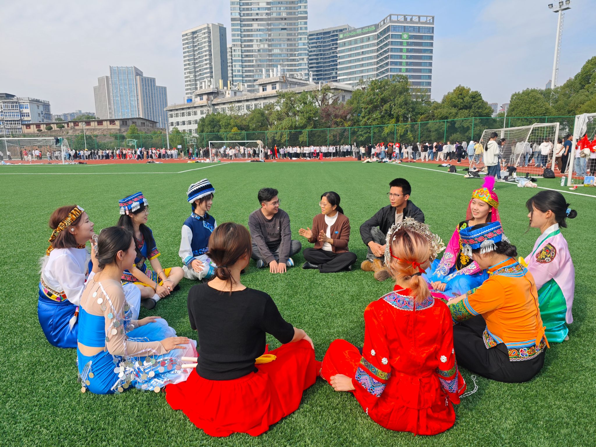 在方阵设计中,学院充分融入多重民族元素,让民族风采与运动活力碰撞出独特火花。参演师生身着色彩绚丽的服饰,在田径场上形成一道流动的“民族风景线”,直观展现“各民族要像石榴籽一样紧紧抱在一起”的团结图景。