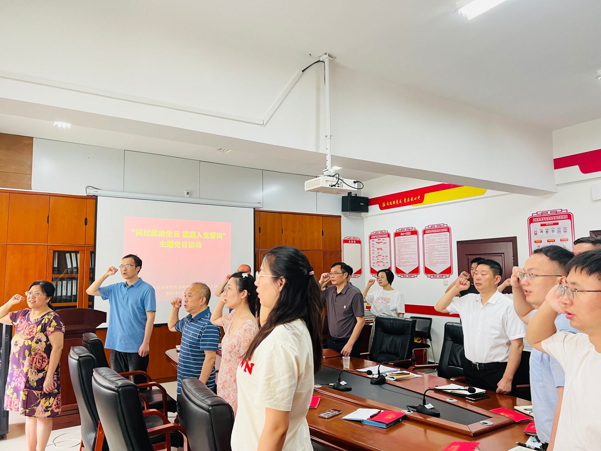 (本网讯)为强化党员身份意识和责任意识,激发党员政治热情,7月18日上午,经济地理学院直属党支部开展“同过政治生日 重温入党誓词”主题党日活动。活动由学院直属党支部书记姚旭辉主持,学院全体党员参加。